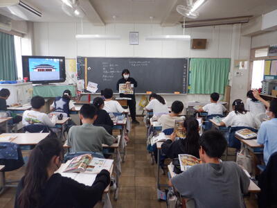 6年生:「大陸に学んだ国づくり:です。大仏づくりの様子から、天皇中心の政治の仕組みについて考えました。