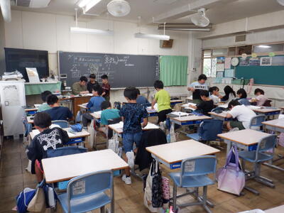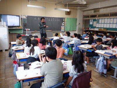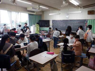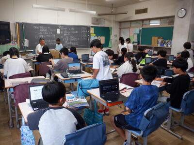 6年生: 班ごとに次のたてわり遊びの計画を立てています。「リーダー当てゲーム」が人気のようです。
