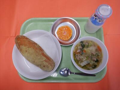 うぐいす揚げパン 肉団子スープ 菊花みかん 牛乳