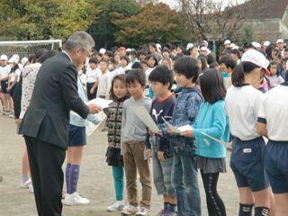 | | | 本日で2学期が終了しました。大きな事件・事故がなく終業式を迎えることができたのも保護者・地域の皆様のお蔭です。心より感謝申し上げます。終業式では、サッカーとそろばんで頑張った子供たちの表彰ができました。また、「イカのおすし」で連れ去りや不審者への注意指導を行いました。良いお年を迎えていただき、3学期の始業式をスタートできるようお願いいたします。 |
