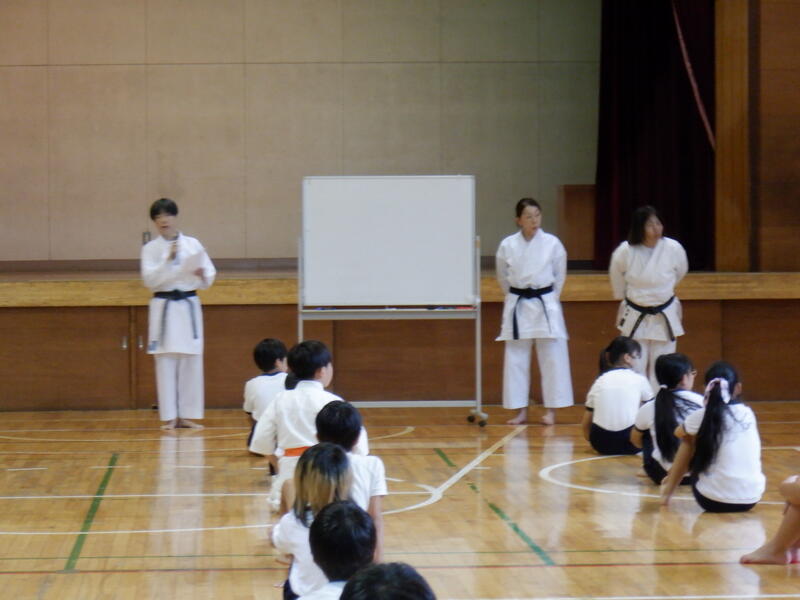 【5年生】空手教室 投稿日時 : 09/29 teacher5 カテゴリ:5年生 9月18日(木)、5年生の空手教室がありました。 日野市空手道連盟の方々が講師としてお越しくださり、空手の礼儀作法や歴史、型の基礎等を教えていただきました。座学だけでなく、実際に体験しました。子供たちは、初めての体験に緊張しながらも、大きな声を出したり、真剣に体を動かしたりと、楽しんでいました。 子供たちにとっては貴重な経験になりました。