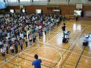 「元気があれば、なんでもできる!熱くなろう!!日野一小!」今年の日野第一小学校の子どもたちのスローガンです。今日の朝の集会で、代表委員会と各委員会の委員長さんが舞台で立派に発表することができました。本当に頼もしいリーダーの姿でした。