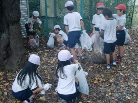 16日(水)の5時間目が「トライ&チャレンジ」の時間でした。2年生は体育館の周辺の落ち葉を拾ったり、草むしりをしたりしました。大きなビニール袋にたくさんの落ち葉を詰めて集積場所に運びました。来る運動会のために学校をきれいにする意欲満々の2年生でした。
