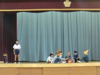 今日は保健委員会の発表がありました。もうすぐハロウィンということで、「ハロウィンパーティー」とテーマに、委員長を中心に台本を考え、練習をしてきました。