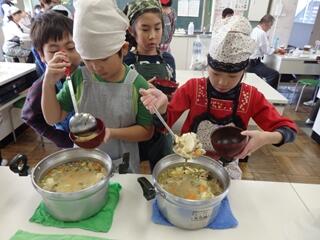 野菜の皮をむいたり切ったりする手間はかかりましたが、自分たちで作った豚汁は、とってもおいしく、たくさんおかわりをしました。