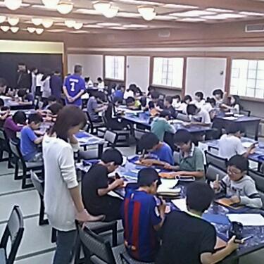 午前6時に起床しました。全員元気です。寝具の片付けを始めています。写真に示された見本どおりに布団をたたむために、力を合わせています。