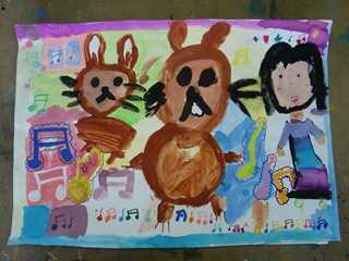 チョコちゃんと作者が、歌を歌っている様子描きました。