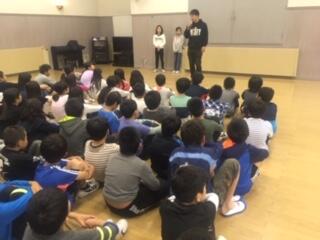 2日目の朝です。霧雨のため館内の多目的室で朝の会を行いました。