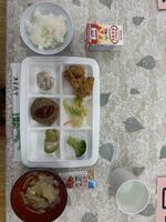 開校式も終わり、いよいよ清里山荘の生活が始まりました。こちらは雨でキャンプファイヤーは残念ながら中止です。その代わり、体育館でゲームやダンスを行います。今日の夕食の写真です。