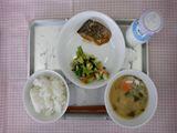 ごはん・魚の照り焼き・キャベツと小松菜のサラダ・味噌汁・牛乳