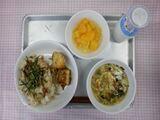 五目寿司・厚揚げのごまだれ・わかめとたまごのスープ・フルーツポンチ・牛乳
