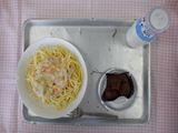 コーンクリームスパゲティー・ココアケーキ・牛乳