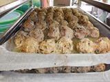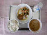 ごはん、高野豆腐入りつくね焼き、もやしのナムル、いもっこ汁、牛乳