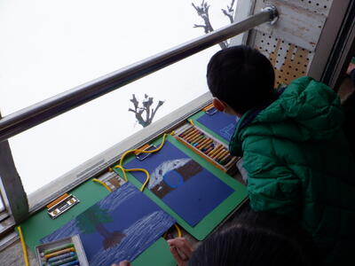 生活科で作ったくるくるへびさんを風の中で回しました。