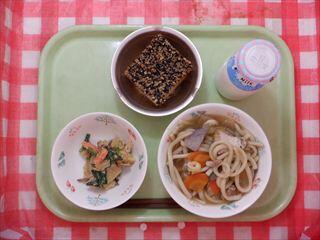 一覧へ けんちんうどん さつまいものごま和え がんづき 日時 2025年11月18日(火) 公開対象 本日の給食 詳細 <本日の給食> ・けんちんうどん ・さつまいものごま和え ・がんづき ・牛乳 <本日の日野産食材> ・東光寺大根…福島幹男さん ・小松菜…奥住方彦さん ・ねぎ…奥住方彦さん ・里芋…奥住方彦さん <主な食材の産地> ・人参…北海道 ・ごぼう…青森県 ・さつまいも…千葉県 ・えのき茸…長野県 ・鶏肉…青森県 ・生揚げ…愛知県(原材料) ・黒砂糖…沖縄県 作成者 teacher9 更新日時 2025-11-27 12:27:02