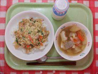 一覧へ あぶたま丼 ごまけんちん汁 日時 2025年12月23日(火) 公開対象 本日の給食 詳細 <本日の給食> ・あぶたま丼 ・ごまけんちん汁 ・牛乳 <本日の日野産食材> ・たまご…由木勉さん ・大根…奥住方彦さん <主な食材の産地> ・じゃがいも…北海道 ・玉葱…北海道 ・水菜…茨城県 ・ごぼう…青森県 ・人参…千葉県 ・ねぎ…岩手県 ・鶏肉…宮崎県 ・油揚げ…滋賀県(原材料) ・こんにゃく…群馬県(原材料) ・生揚げ…愛知県(原材料) 作成者 teacher9 更新日時 2025-12-23 21:34:46