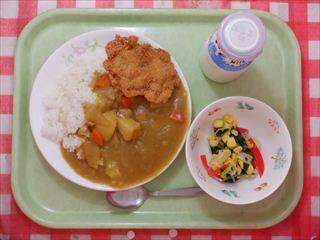 一覧へ チキンカツカレーライス 白菜と青菜のサラダ 日時 2026年01月16日(金) 公開対象 本日の給食 詳細 <本日の給食> ※ 画像は高学年の分量です。 ・チキンカツカレーライス ・白菜と青菜のサラダ ・牛乳 <本日の日野産食材> ・白菜…立川登美江さん ・小松菜…立川登美江さん <主な食材の産地> ・にんにく…青森県 ・生姜…高知県 ・玉葱…北海道 ・じゃがいも…長崎県 ・りんご…青森県 ・赤パプリカ…高知県 ・人参…千葉県 ・鶏肉…青森県 ・豚がら…埼玉県 ・ホールコーン…北海道 作成者 teacher9 更新日時 2026-01-17 07:04:26