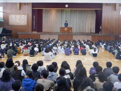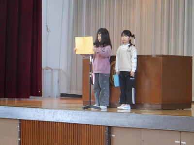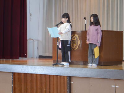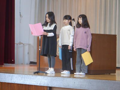 校長先生のお話に続き、3年生各クラスの代表児童が、2学期の振り返りや3学期に向けた目標を堂々と発表してくれました。