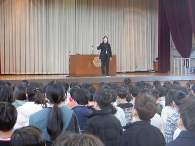 生活指導主任からは、冬休みを楽しく安全に過ごすために、4つの話がありました。