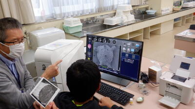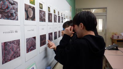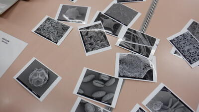 電子顕微鏡で観察したものはプリントアウトしてもらい、児童に配布しました。