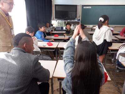 外国語の授業や給食、たてわり班活動など、様々な時間で児童と関わっていただきました。