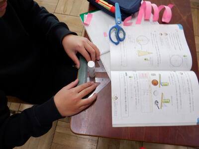 家から持ってきた丸いものの円周を友達と協力して測っており、活動にとても意欲的な姿がありました。