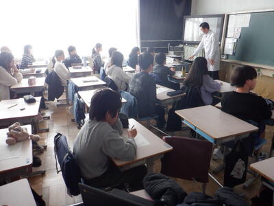 2月3日(火)、先週に続いて学校薬剤師の古田先生を講師にお招きし、第2回薬物乱用防止教室を行いました。