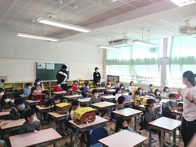 クラスの児童は、お道具箱の中身を紹介したり、教科書やドリルを見せたりしました。