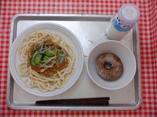 ジャージャーうどん・小松菜ドーナッツ・牛乳