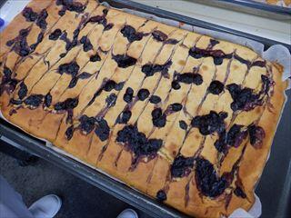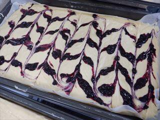 ブルーベリージャムで模様を描いて、オーブンでふっくらと焼き上げました。