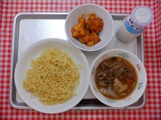 サンマーメン・生揚げとポテトのチリソース・牛乳