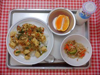 カレー麻婆丼・もやしのナムル・くだもの(不知火)・牛乳