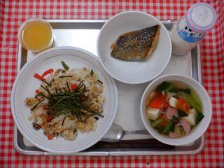 五目ずし・鰆の西京焼き・すまし汁・ピーチゼリー・牛乳