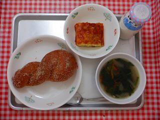 セサミ揚げパン・ポテトオムレツ・ABCスープ・牛乳