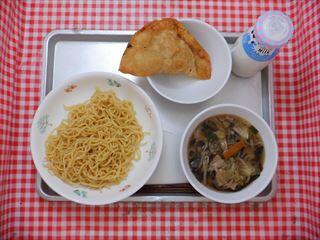 本日は、PTA主催の給食試食会です。保護者の皆様から「子供たちの好きな人気メニューが食べたい」という声があったので、今回の献立となりました。(日光に行っている6年生、ごめんね・・・)【八王子ラーメン】はリクエスト給食でいつも1位か2位になる献立です。昆布・煮干し・サバ節でとった和風だしで、野菜もたっぷり入れて作る四小の八王子ラーメンは、旨味が感じられるスープが自慢です。のびてしまわないように、麺は別で盛り付けて、つけ麺スタイルでいただきます。【ジャンボ餃子】はキャベツをたっぷり入れたさっぱりとしたタネを、大きな餃子の皮(今回は直径16㎝)で包み、油で揚げた揚げ餃子です。パリパリの皮とジューシーな肉ダネで、ボリューム満点の餃子です。