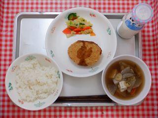 ごはん・長ねぎコロッケ・白菜の浅漬け・けんちん汁・牛乳