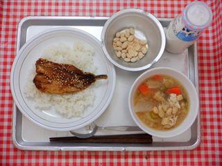 いわしのかば焼き丼・鬼除け汁・ミルクきなこ豆・牛乳