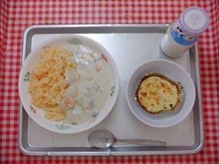 キャロットライスホワイトソースがけ・小松菜のキッシュ・牛乳
