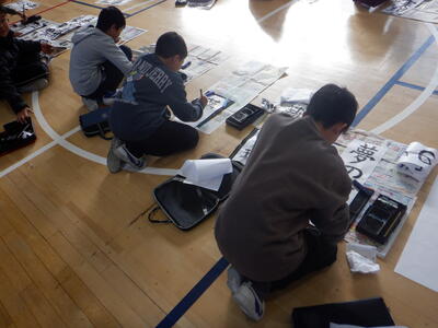1月8日(木)、3・4時間目に体育館で書初めを行いました。