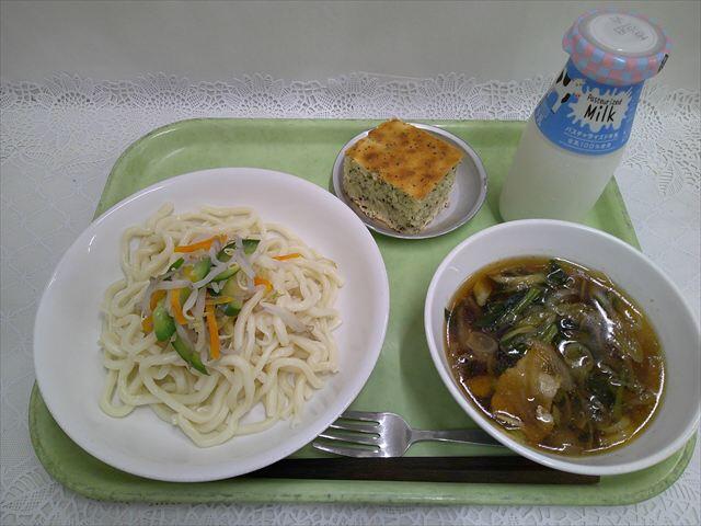 豚ねぎうどん 紅茶ケーキ 牛乳