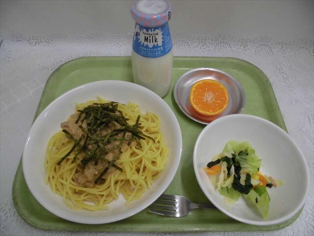 大根おろしとツナのスパゲッティ きゃべつと小松菜のサラダ 菊花みかん 牛乳