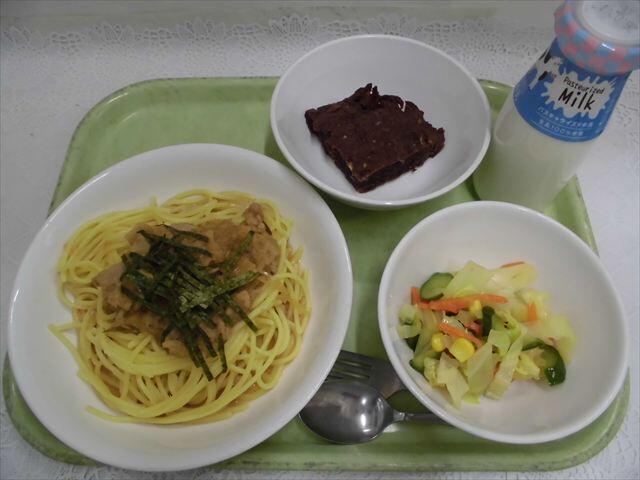 豚ねぎみぞれスパゲッティ きゃべつサラダ 大豆とおからのブラウニー 牛乳