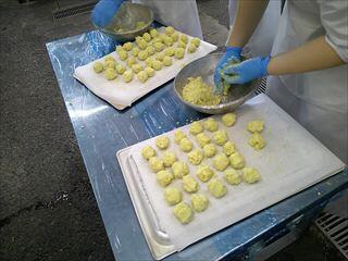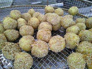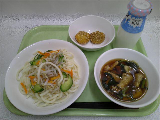 鶏肉汁うどん さつまいものごま団子 牛乳