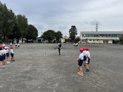 4年3組の担任の先生がご懐妊ということで、体育の授業を講師の先生が指導しています。