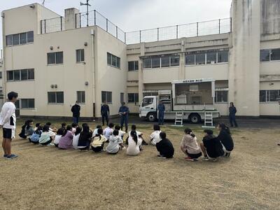 11月5日(水)に避難訓練を行い、その後5年生は起震車体験を中庭で実施しました。