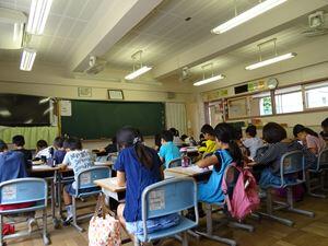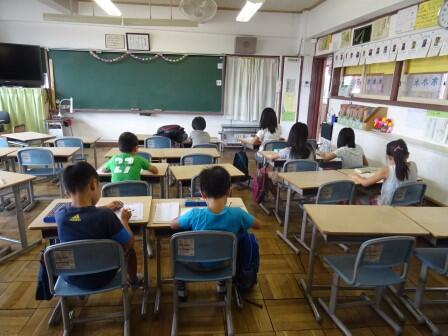 夏季学習会、4年生は2つの教室に分かれて取り組んでいます。