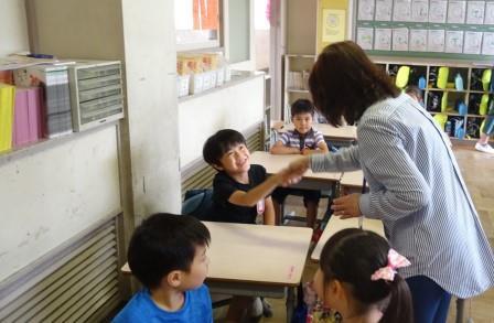 6月から、英語活動が始まりました。1年生では、学期ごとに2回ずつ行います。