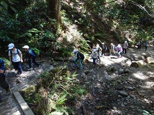 早速、高尾山口駅に着くと、他の登山客がたくさんいました。ケーブルカーを横目に歩き始め、いよいよ登山開始です。初めは、緩やかな坂道が続き、子供たちも元気