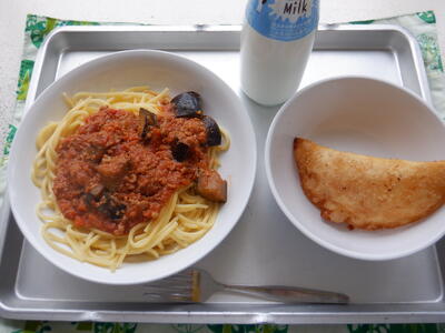 かぼちゃとさつまいものパイ風は、さつまいもとかぼちゃをマッシュしてオレンジジュースとパイン缶を加えたあんを餃子の皮に包んで揚げました。