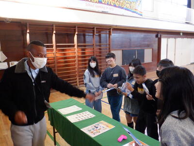 5・6年生を中心にイングリッシュキャラバンのプログラムを行いました。ネイティブの先生が複数人来校され、オールイングリッシュでコミュニケーションを取りました。5年生は、それぞれのお店で買い物をしました。今まで学習した「How much?」「I want to go to ~.」「I'd like ~.」を使いながら取り組みました。もっと話したい!!と更なるやる気をアップさせている子や笑顔でできた!!と自信を付けている子もいました。